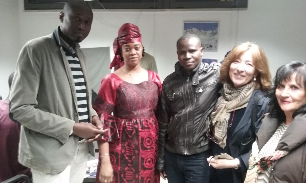 Ad accogliere il console Rokhaya Ba Toure (nella fotografia in abito tradizionale senegalese) è stata Giovanna Mantelli (seconda da destra) che nella Segreteria provinciale della Cisl segue le problematiche relative all’immigrazione, e il presidente dell’Associazione dei senegalesi di Brescia (il primo a sinistra nella foto).