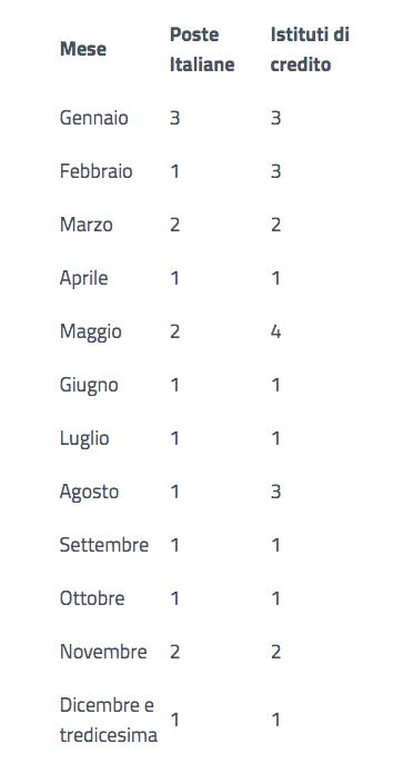 L’INPS ricorda inoltre che il pagamento avviene ogni primo del mese purché sia un giorno in cui gli sportelli bancari sono operativi, diversamente vengono posticipati al primo giorno utile.