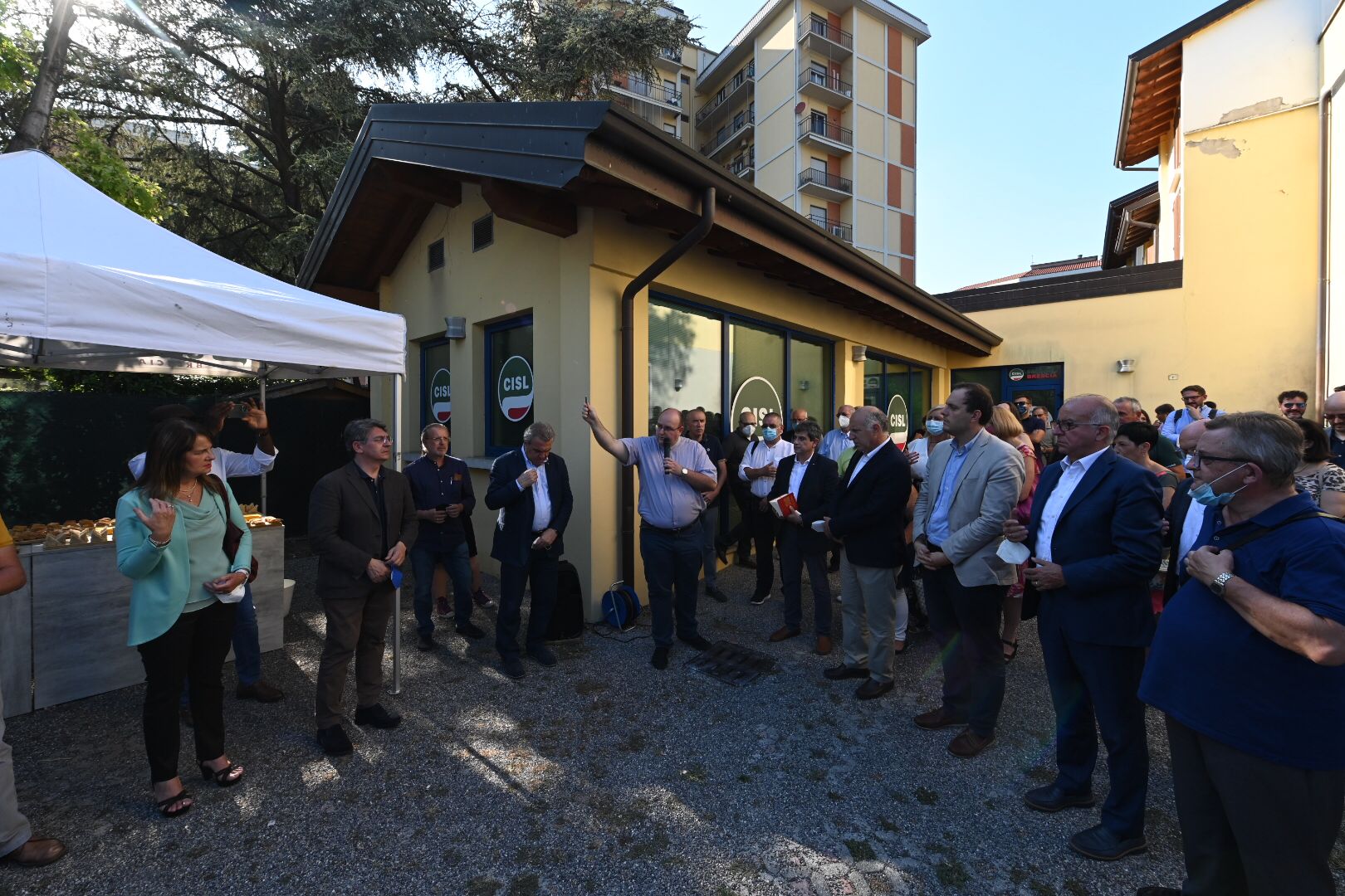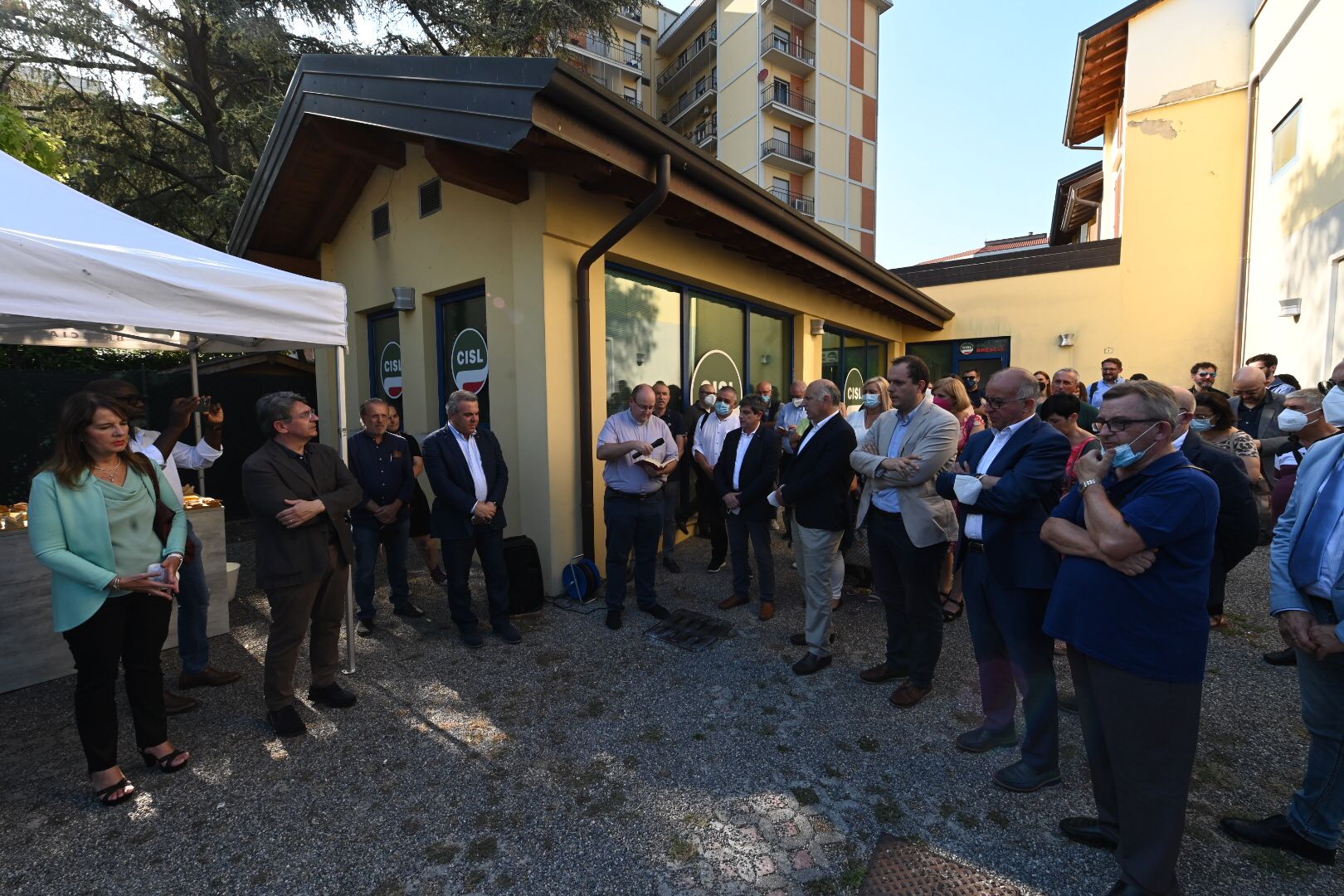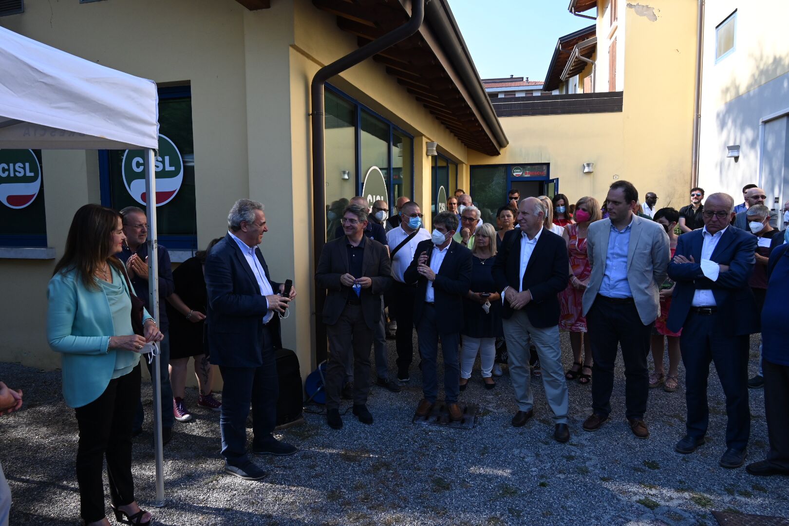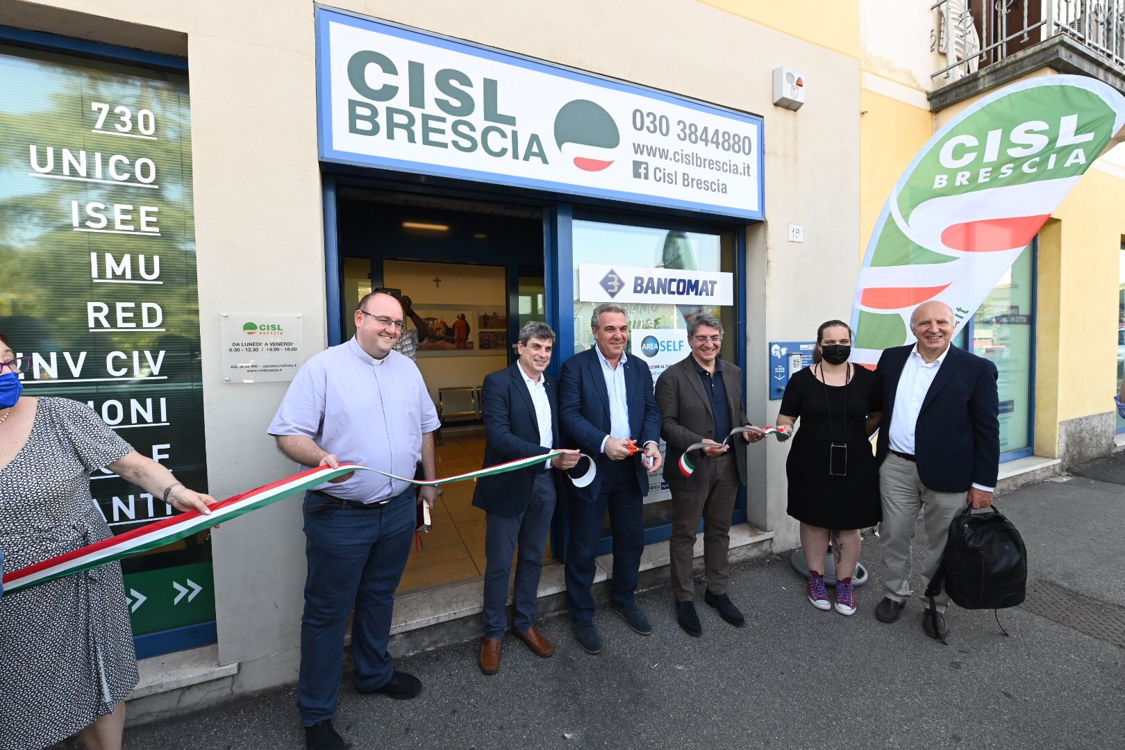 È toccato a Luigi Sbarra, segretario nazionale della Cisl, tagliare il nastro inaugurale della seconda sede cittadina della Cisl, con accanto il segretario provinciale Alberto Pluda, il sindaco della città Emilio Del Bono e don Claudio Laffranchini della Parrocchia della Volta.