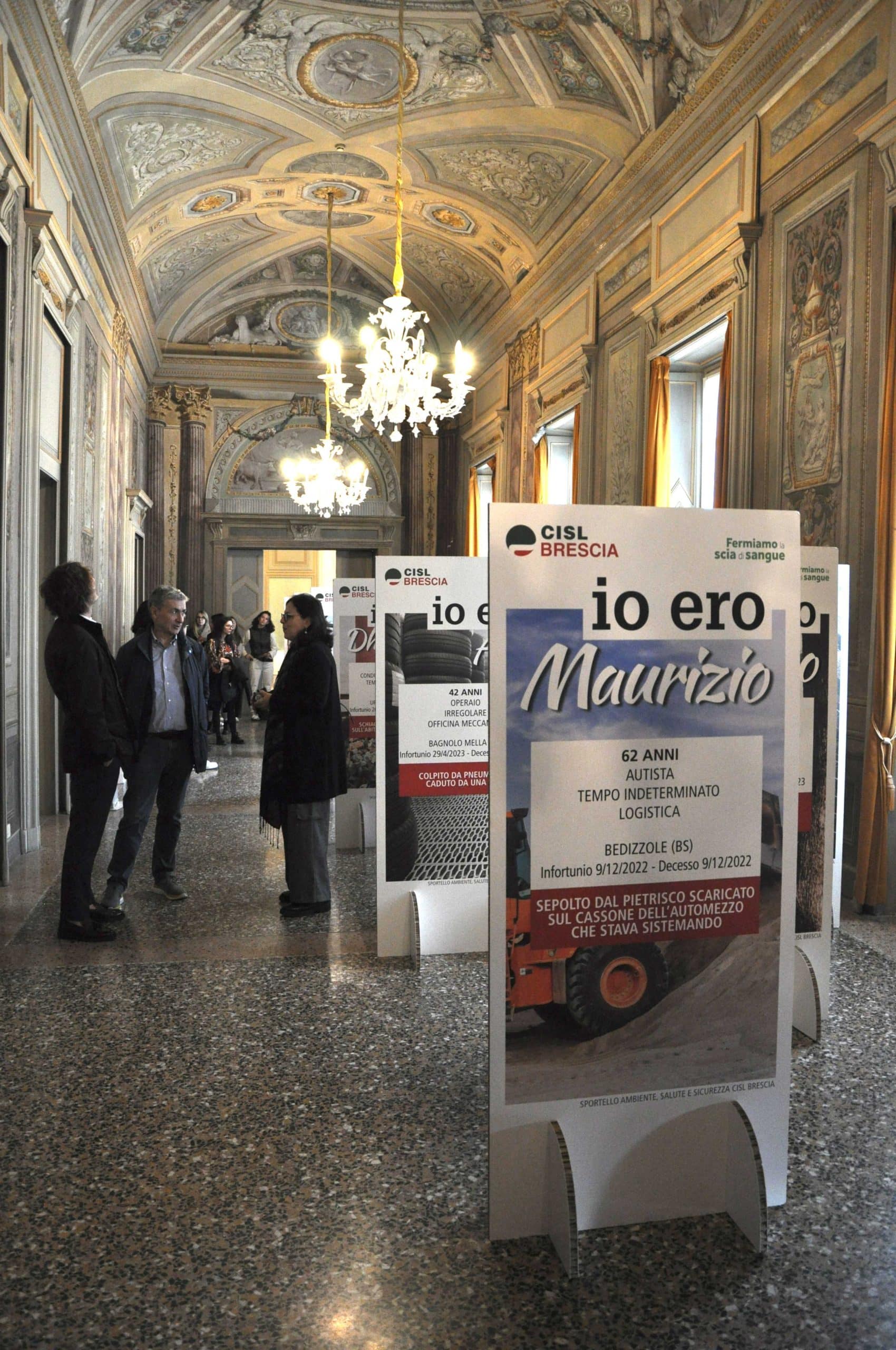 La Sala delle Candelabre, uno degli spazi più significativi dell’Università degli Studi di Brescia nella sede di via San Faustino, ospita da oggi e fino a venerdì la mostra “IO ERO – Memorie di vite spezzate”, realizzata dalla CISL bresciana nell’ambito della campagna di sensibilizzazione ai temi della sicurezza nei luoghi di lavoro.