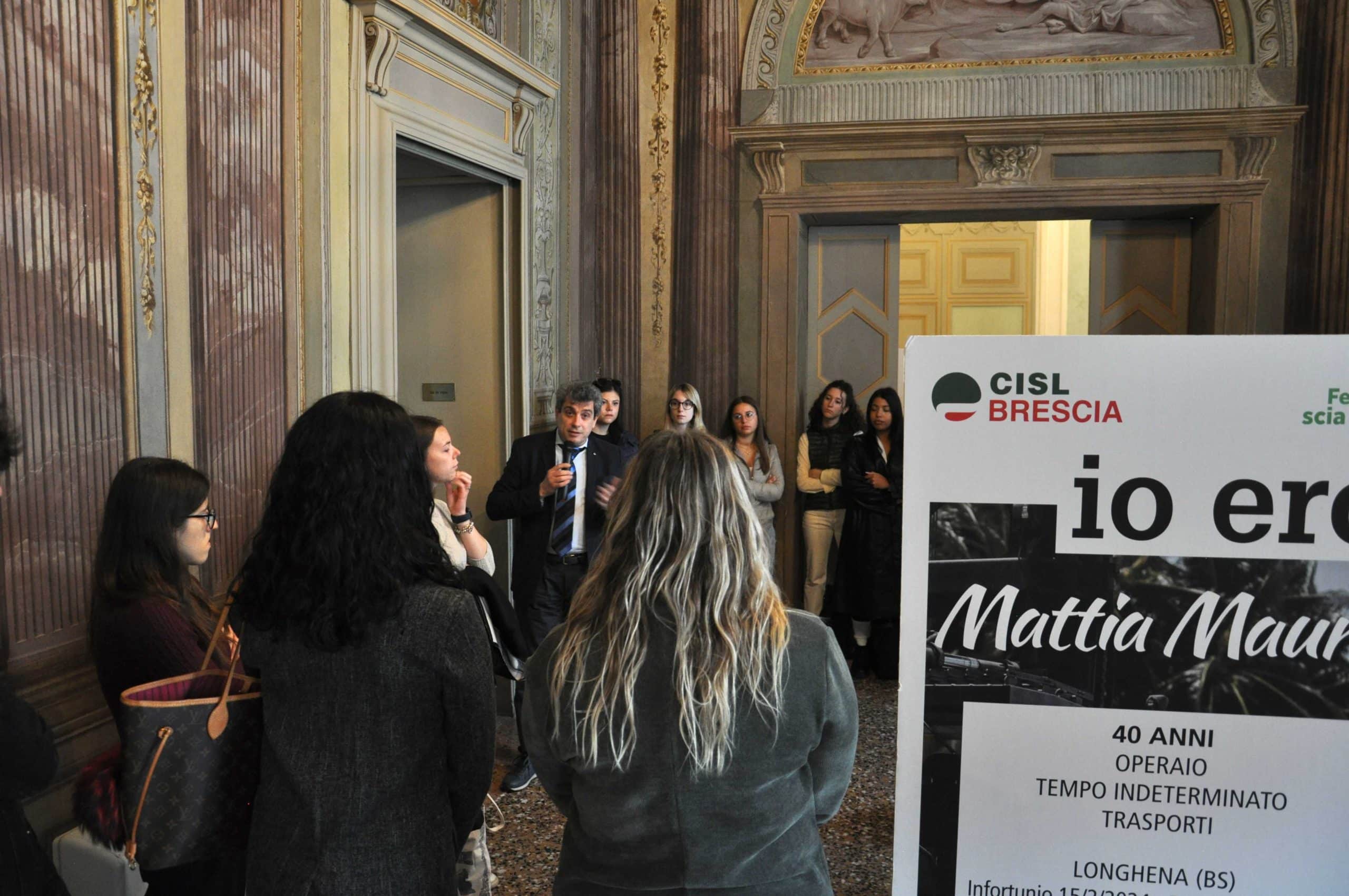 Questa mattina la mostra è stata presentata agli studenti dal segretario generale della CISL Alberto Pluda e da Paolo Reboni, che per la Segreteria provinciale ha seguito più da vicino il progetto, insieme agli operatori dello Sportello Sicurezza CISL Brescia Giuseppe Sbarufatti e Francesco Martinelli.