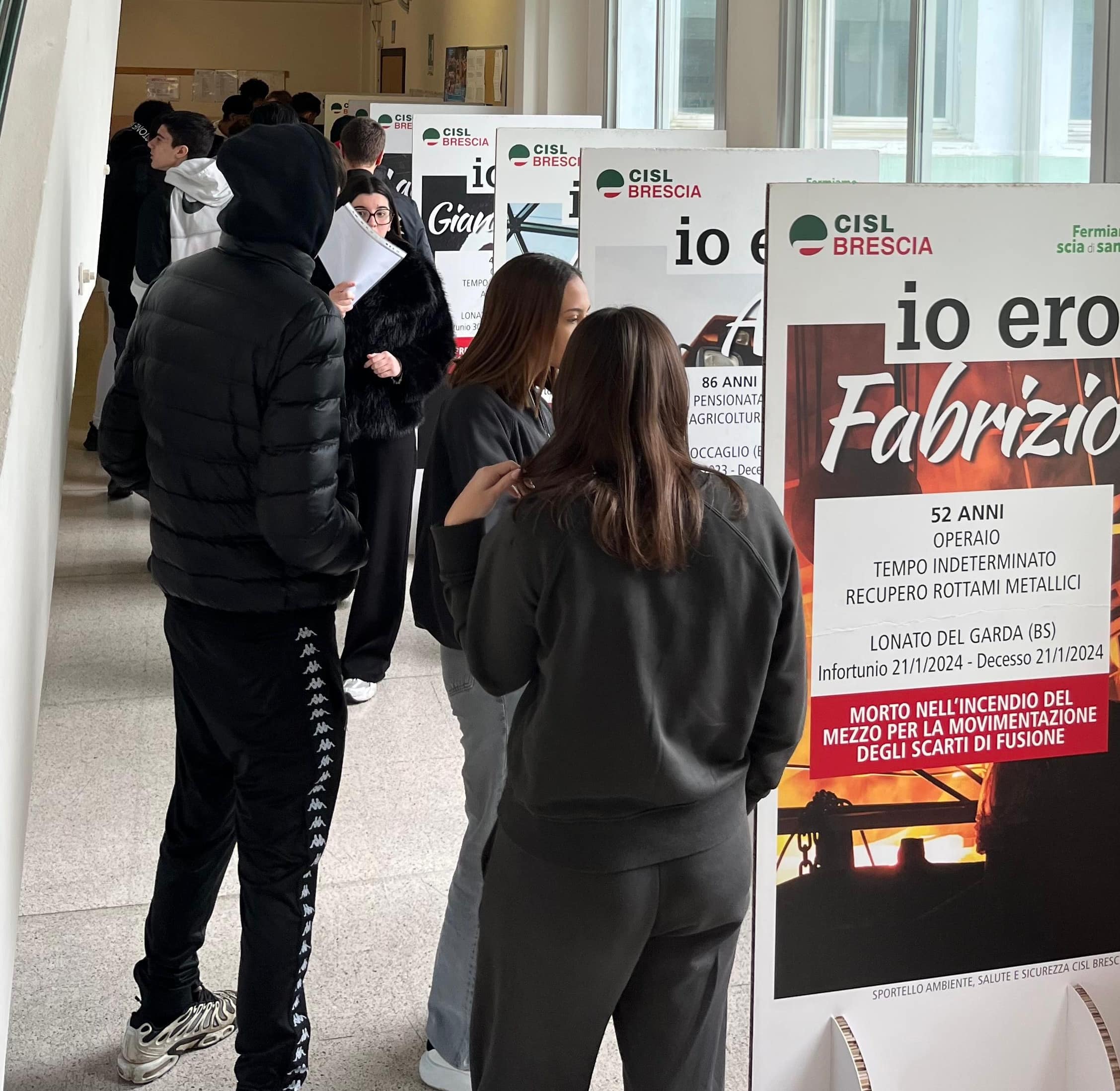 A colpire in modo particolare gli studenti che si sono soffermati davanti ai pannelli che compongono l’installazione, è stata soprattuto la giovane età di molte delle vittime di infortunio sul lavoro, vite perdute per cadute dall’alto, per attimi di distrazione, per il mancato rispetto delle norme di sicurezza.