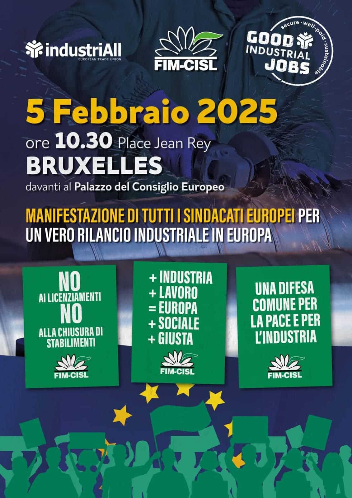 Grande manifestazione europea a Bruxelles organizzata da IndustriAll Europe, il sindacato europeo dell’industria, per rivendicare un vero piano industriale europeo.