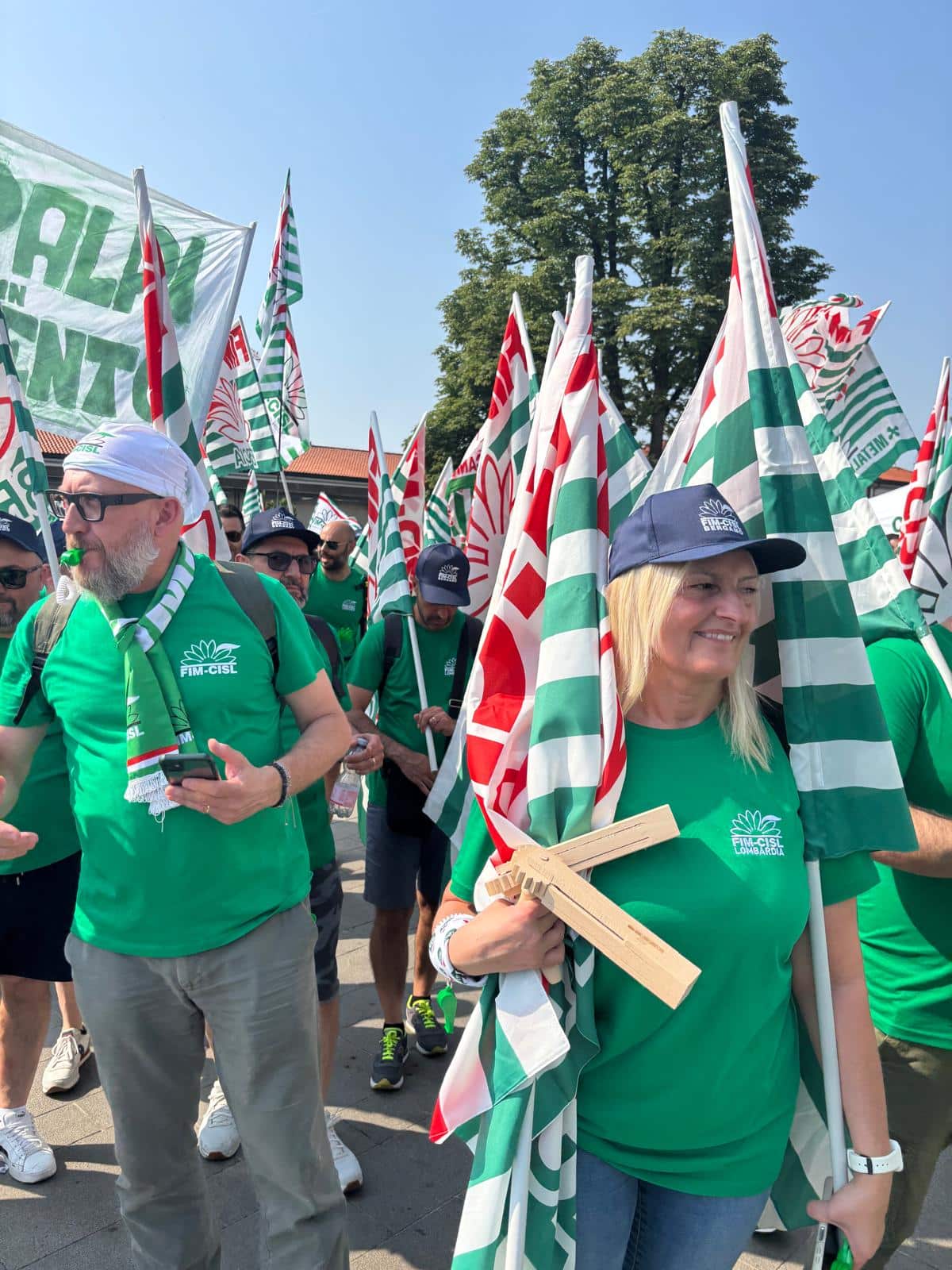 Il segretario generale della Fim Cisl Lombardia, Mirko Dolzadelli, ha aperto gli interventi dal palco di Piazza Vittorio Veneto, al termine del corteo che ha attraversato uno delle principali arterie cittadine.
